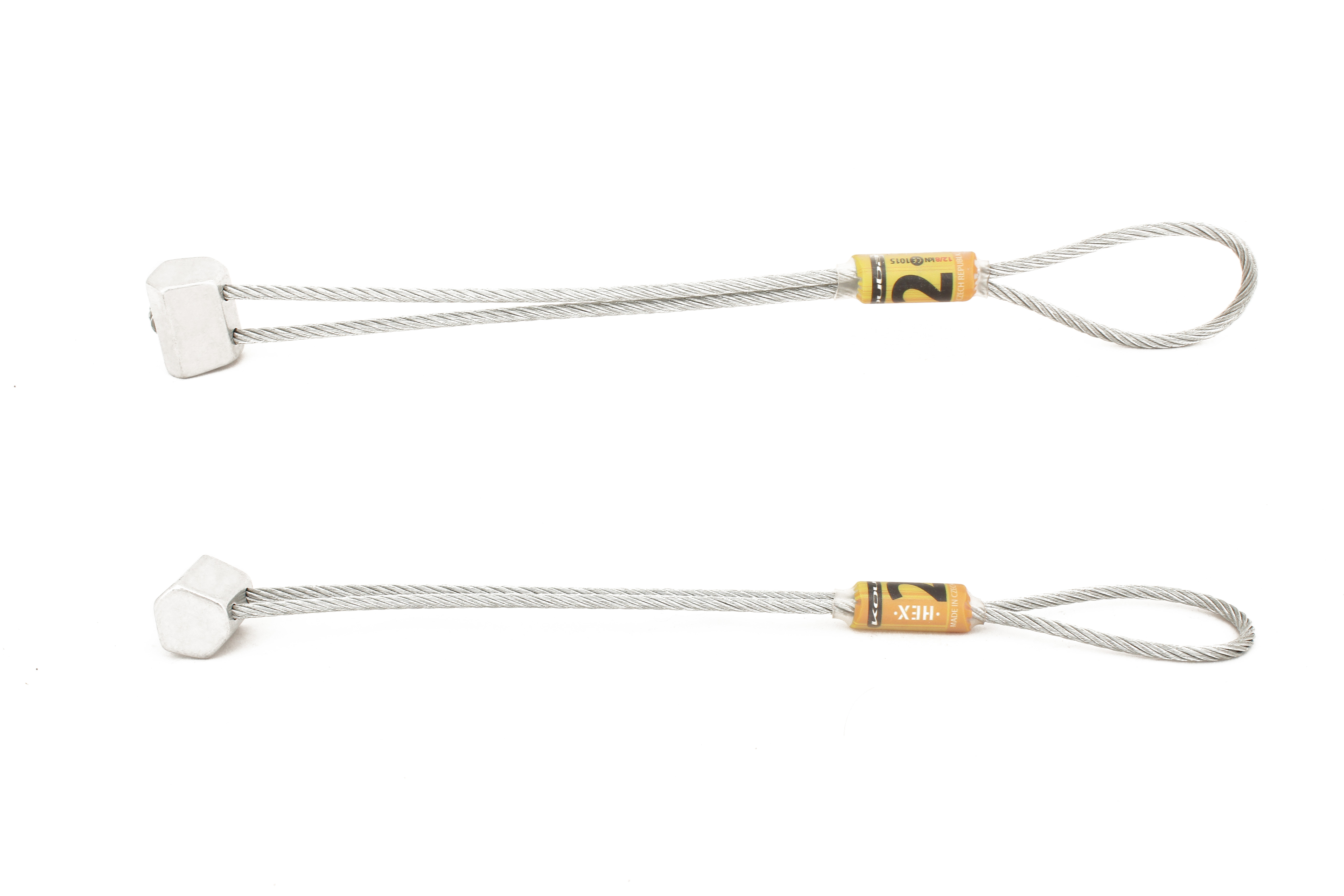 Great aluminum hexagonal nuts on a steel wire. Hexes can be placed in three different positions.